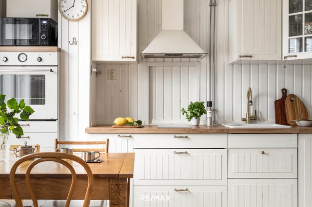 - - integroidut kodinkoneet pääosin - vaaleasävytteinen tunnelmaan sopiva keittiö