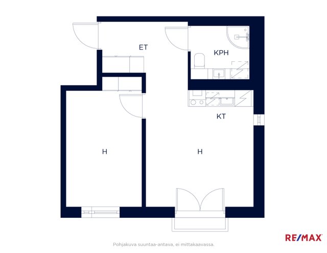 Asunnon tehokas ja toimiva pohjaratkaisu tekee jokaisesta neliöstä käyttökelpoisen. Avoin keittiö ja olohuone muodostavat valoisan oleskelutilan, Makuuhuone on rauhallinen ja tarjoaa hyvin säilytystilaa, ja kylpyhuone on tyylikäs, moderni ja varustettu arjen mukavuuksilla.