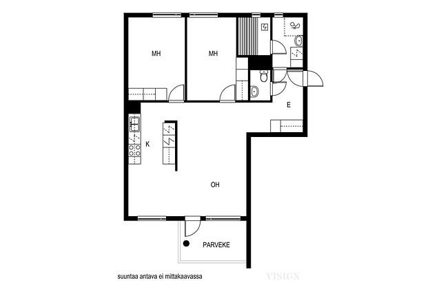 Viidennessä kerroksessa sijaitsevan kodin kruunaa etelään suuntautuva lasitettu parveke, joka tuo lisätilaa ja valoisuutta – täällä voit nauttia auringonvalosta ja rauhallisista hetkistä aamusta iltaan.