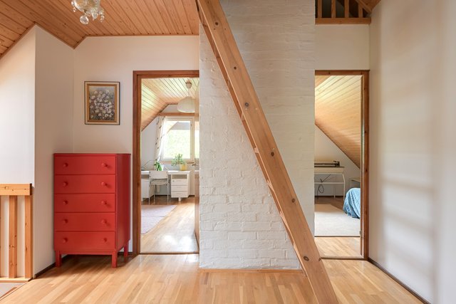 Ensimmäisen ja toisen kerroksen välinen välipohja on puurakenteinen.