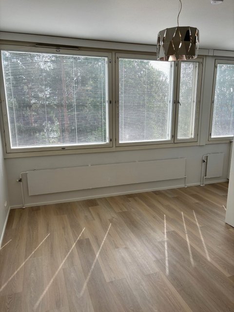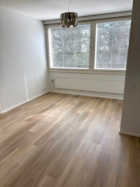 - Valoisa olohuone, juuri laitettu uusi vinyylilattia ja seinät maalattu.