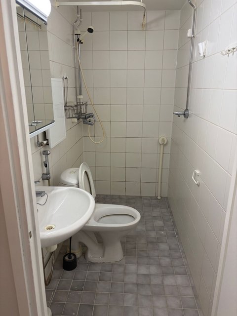 - WC-istuin, suihku, pesukoneliitäntä, peilikaappi, pesuallas, bidee-suihku, ja peili