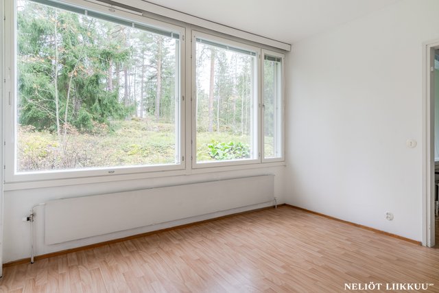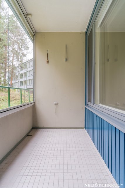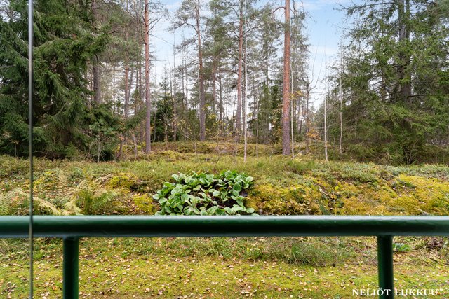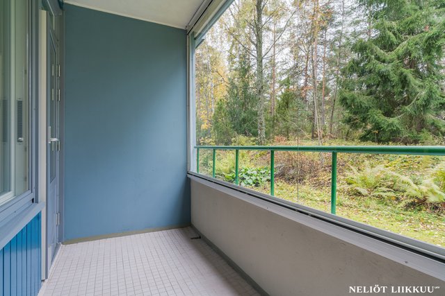 Huoneistossa on tilava olohuone isoilla ikkunoilla ja olohuoneesta on käynti lasitetulle parvekkeelle, joka avautuu kauniille metsämaisemalle, tarjoten rauhallisen paikan rentoutumiseen ja nämä maisemat ovat hyvin harvinaisia näillä kulmilla.