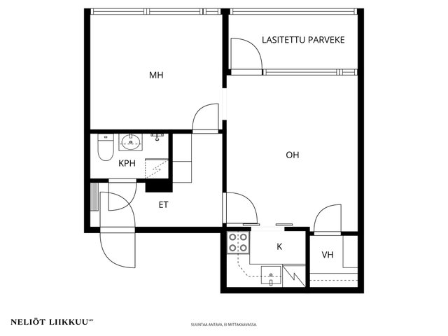 - Ei tarkistusmitattu. Pinta-alat saattavat tämän ikäisissä kohteissa (yhtiö rekisteröity ennen 01.01.1992) poiketa olennaisestikin asuinrakennusten nykyisten mittaustapojen ja standardien (SFS 5139) mukaan laskettavasta asuintilojen pinta-alasta. Pinta-ala voi siis olla edellä mainittua pienempi tai suurempi.