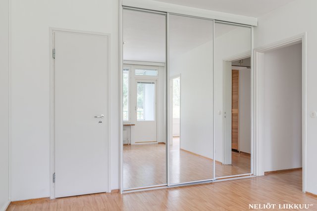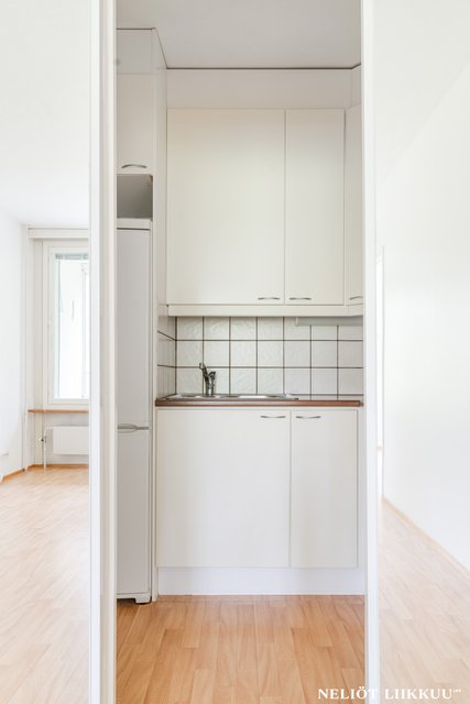 Käytännöllinen keittokomero, jonka saa kivasti piiloon peililiukuovilla. Täysin remontoitu kylpyhuone linjasaneerauksen yhteydessä vuonna 2006.