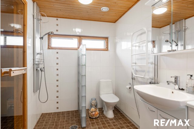 - WC-istuin, suihku, lattialämmitys, pesuallas, allaskaappi, bidee-suihku, peilikaappi, ja suihkuseinä