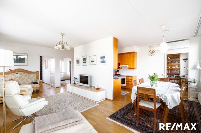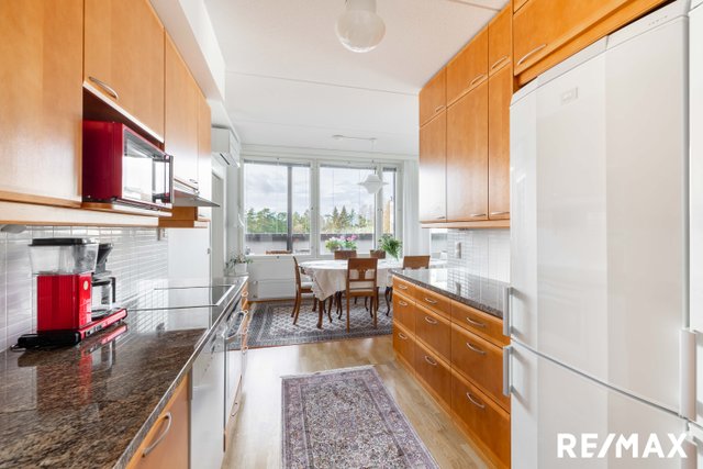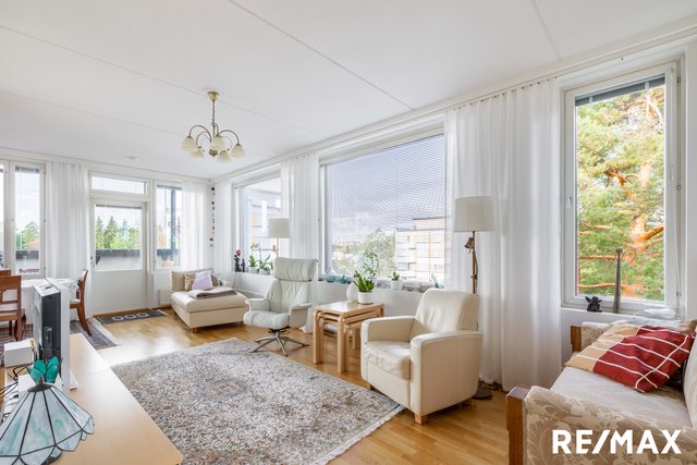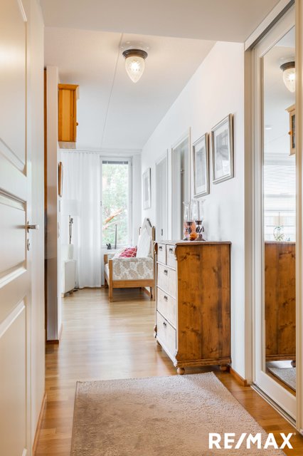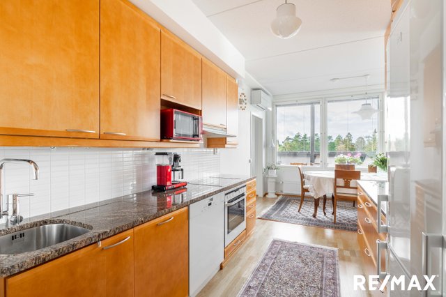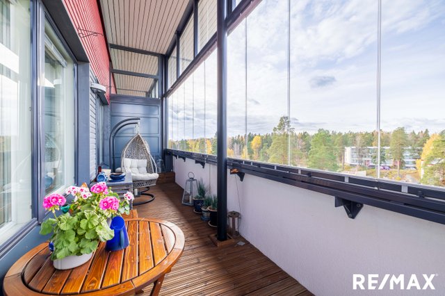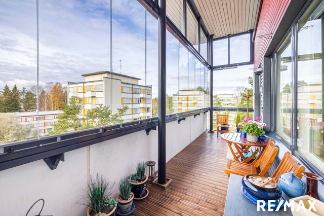 Asunnossa on kolme makuuhuonetta, tilava olohuone sekä moderni keittiö kivitasoineen, jotka tekevät arjesta sujuvaa. Lasitettu parveke toimii lisähuoneena, jossa voi nauttia rauhallisista hetkistä ympäri vuoden. Asunnossa löytyy myös oma sauna, erillinen kodinhoitohuone, erillinen WC, kylpyhuone sekä tilava vaatehuone, jotka lisäävät asumismukavuutta.