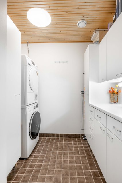- Pesukoneliitäntä, tila pesutornille, ja lattialämmitys