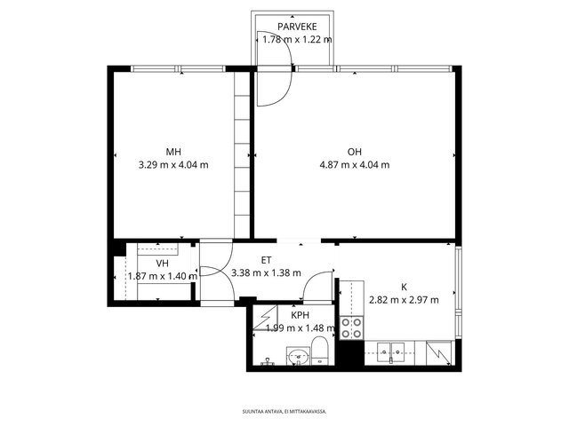 - Ei tarkistusmitattu. Pinta-alat saattavat tämän ikäisissä kohteissa (yhtiö rekisteröity ennen 01.01.1992) poiketa olennaisestikin asuinrakennusten nykyisten mittaustapojen ja standardien (SFS 5139) mukaan laskettavasta asuintilojen pinta-alasta. Pinta-ala voi siis olla edellä mainittua pienempi tai suurempi.
