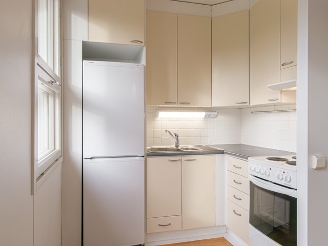 - Jääkaappipakastin (Siemens, valkoinen ), liesi (Helkama, 500, valkoinen), ja liesituuletin