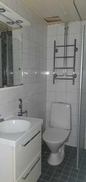 - WC-istuin, suihku, suihkuseinä, bidee-suihku, ja peilikaappi