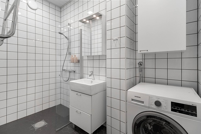 - pyyhekuivain valkoinen seinälaatta, harmaa lattialaatta