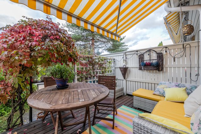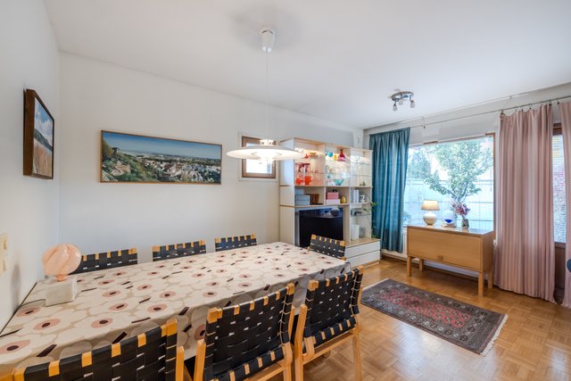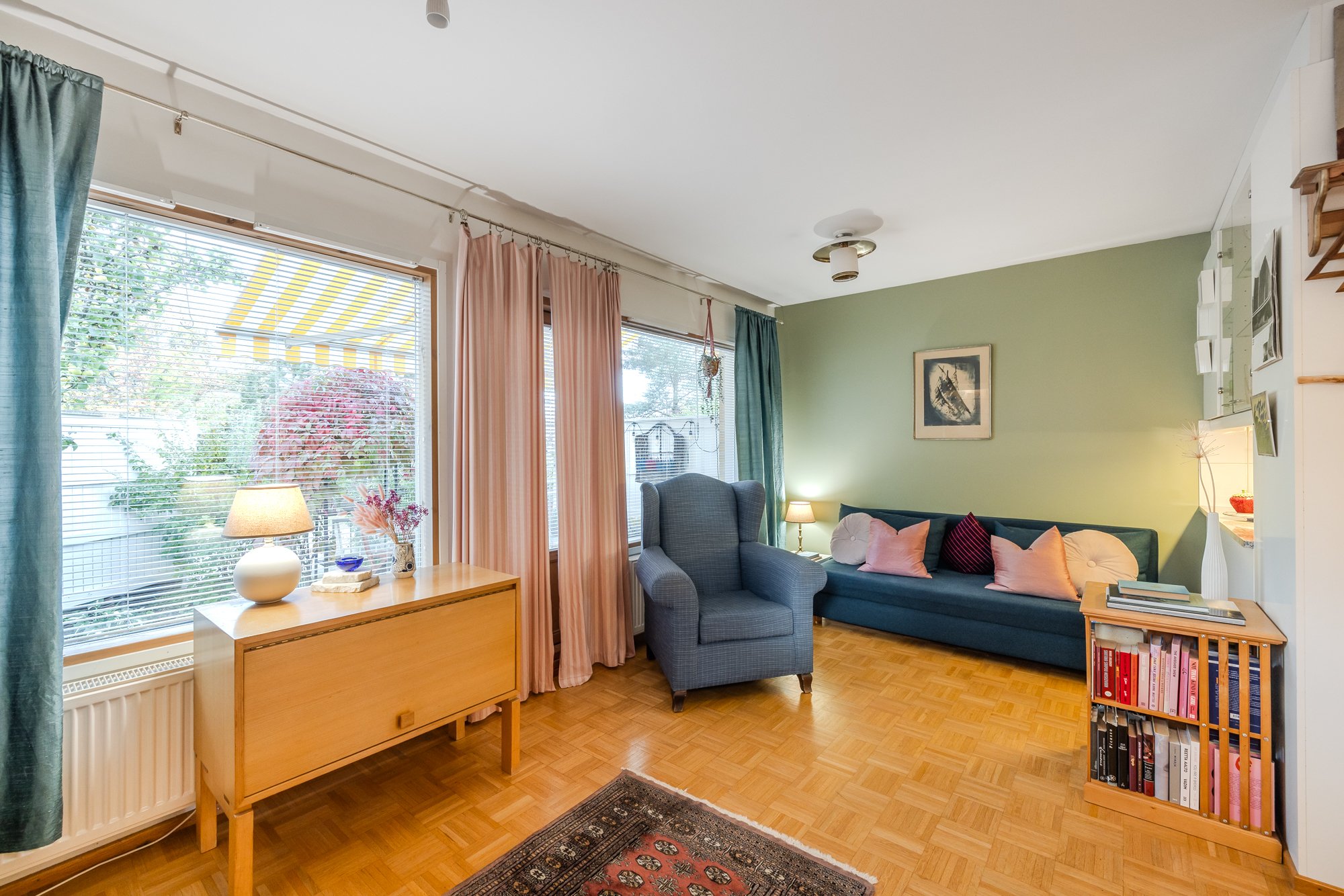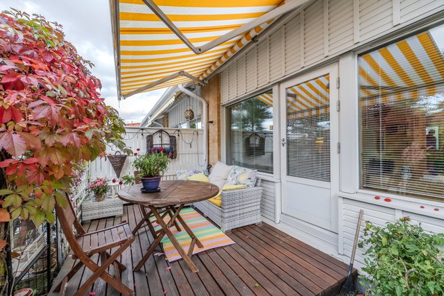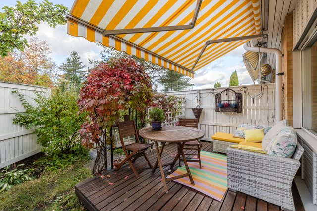 Tämä Espoon Matinkylässä sijaitseva rivitalon päätyhuoneisto tarjoaa ihanteelliset puitteet asumiseen. Asunto on kahdessa kerroksessa ja siinä on neljä huonetta, keittiö, sauna, kaksi kylpyhuonetta sekä todella tilava varastotila. Olohuoneesta on käynti suojaisalle terassille ja piha-alueelle, jossa voi nauttia rauhallisista hetkistä vehreässä ympäristössä. Alakerran kylpyhuone on remontoitu vuonna 2020, muilta osin huoneisto on lähes alkuperäisessä kunnossa. Huolella asuttu ja siististi pidetty koti.