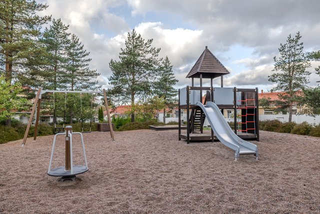 - Taloyhtiöllä viehättävä piha-alue joka sijaitsee taloyhtiön rakennusten välissä. Täällä on lasten leikkipaikka.