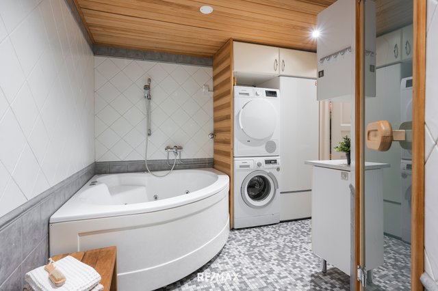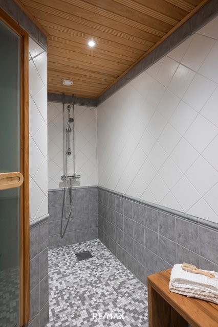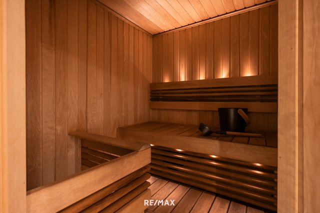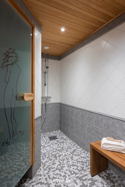 Asunnon sauna on varustettu kauniilla muotolauteilla ja led-valaistuksella, ja sen sisustus on toteutettu lämpökäsitellystä puusta. Kylpyhuoneessa on poreamme ja kodinhoitopiste, mikä tekee arjesta sujuvaa ja mukavaa. Molemmissa kerroksissa on tilavat wc-tilat.