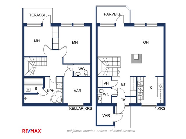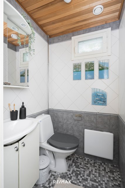 - Molemmissa kerroksissa on tilavat wc-tilat. VARUSTEET: allaskaluste, wc-istuin, käsisuihku LATTIA: laatta SEINÄT: laatta, maali