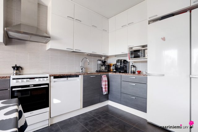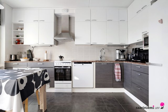 - Jääkaappi, erillinen pakastin, liesi, liesituuletin, ja astianpesukone