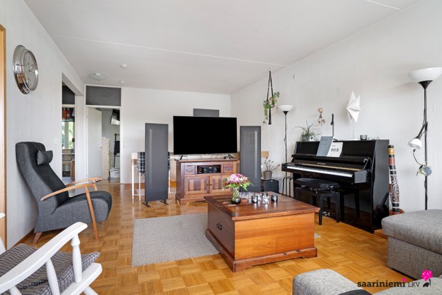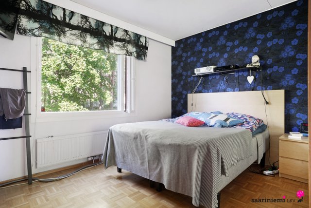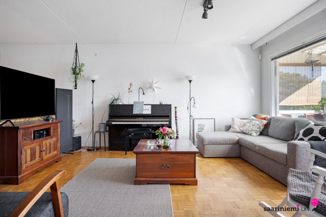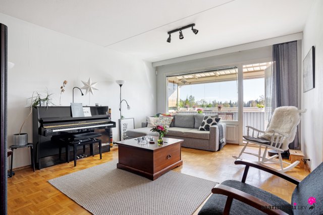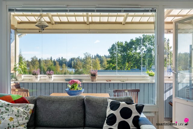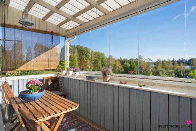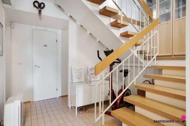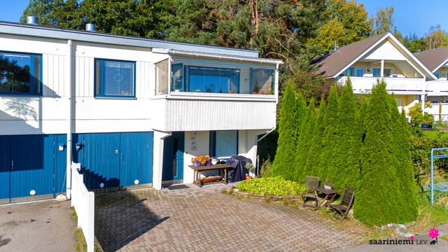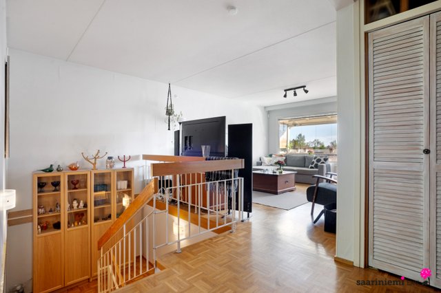 Tässä kaksikerroksisessa viihtyisässä kodissa on kolme makuuhuonetta, joista kaksi sijaitsee olohuoneen, keittiön ja kylpyhuoneen lisäksi yläkerrassa. Olohuone on avara sekä valoisa ja tilasta on käynti parvekkeelle, joista molemmista on järvinäkymää. Erillinen keittiö on tyylikäs ja tilava, ja sinne mahtuu hyvin ruokapöytä. V. 2012-2014 asunnossa on remontoitu keittiö, sauna, pesuhuone, kylpyhuone, wc ja pukuhuone.