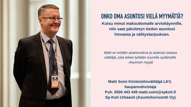 Tätä asuntoa myy Matti Soini, Kiinteistönvälittäjä LKV, kaupanvahvistaja