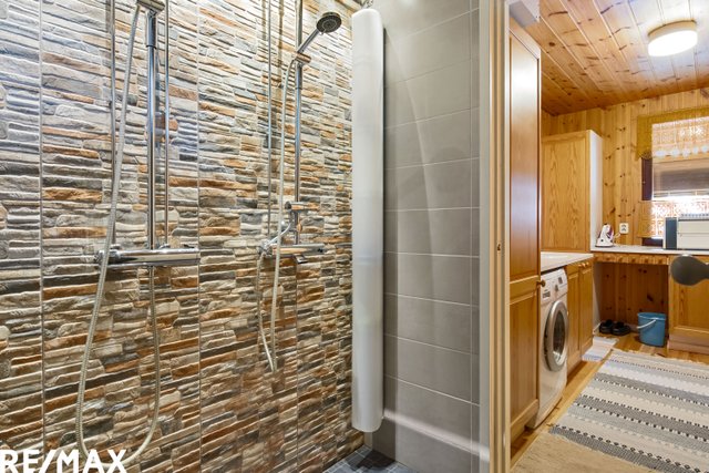 - Pöytätaso, keskuspölynimuri, pesukoneliitäntä, pesuallas, ja pyykkikaapit