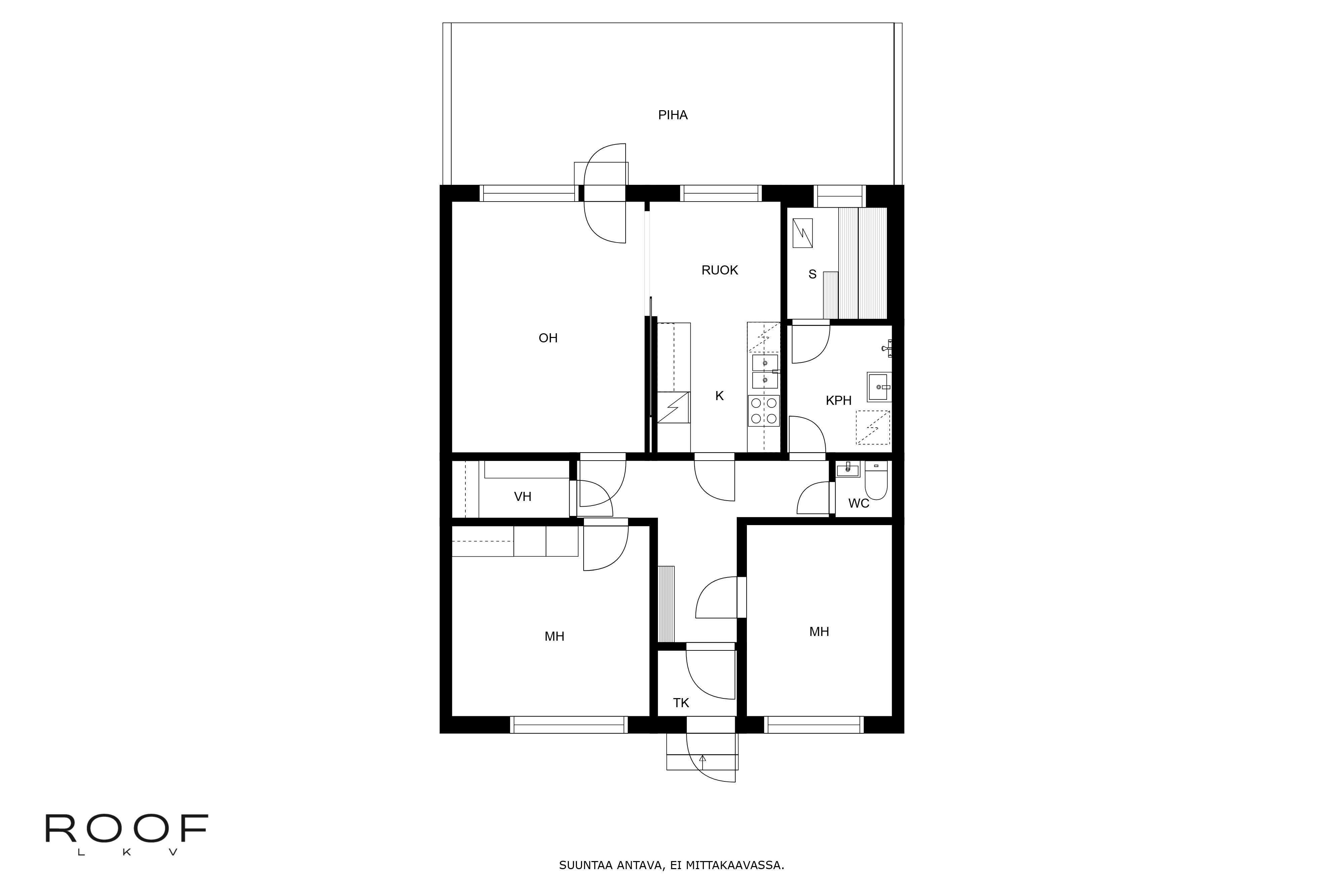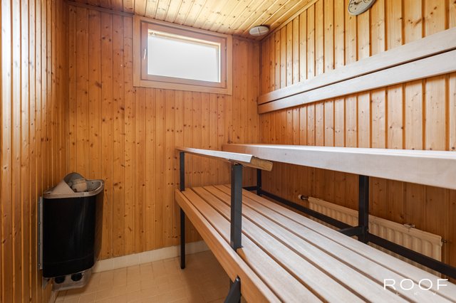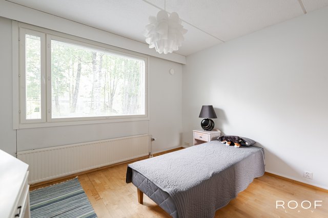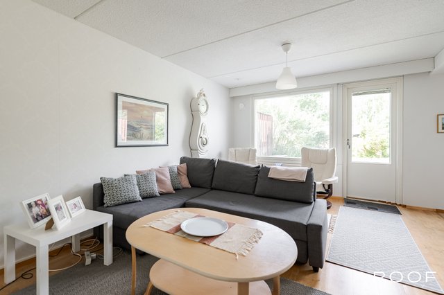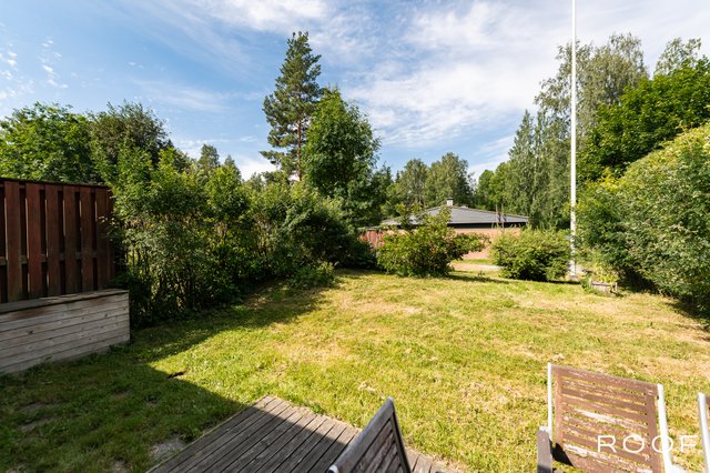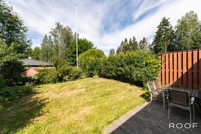Tämä asunto pitää sisällään runsaiden asuinneliöiden lisäksi tilaa ja avaruutta. Pohjaratkaisu on äytännöllinen. Valoisa ja avara olohuone, johon mahtuu isompikin sohvaryhmä. Olohuoneesta käynti takapihalle. Ruokailutilaan mahtuu lapsiperheelle sopiva ruokailuryhmä. Keittöstä löytyy hyvin kaappi- sekä laskutilaa. Makuuhuoneet ovat tilavia ja asunnosta löytyy myös vaatehuone. Erillinen wc helpottaa lapsiperheen arkea ja sauna lisää ripauksen luksusta arkeen.