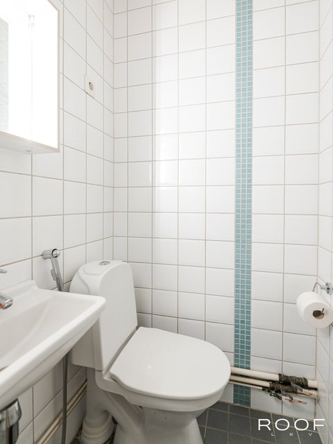 - Suihku, suihkuseinä, pesukoneliitäntä, ja peilikaappi