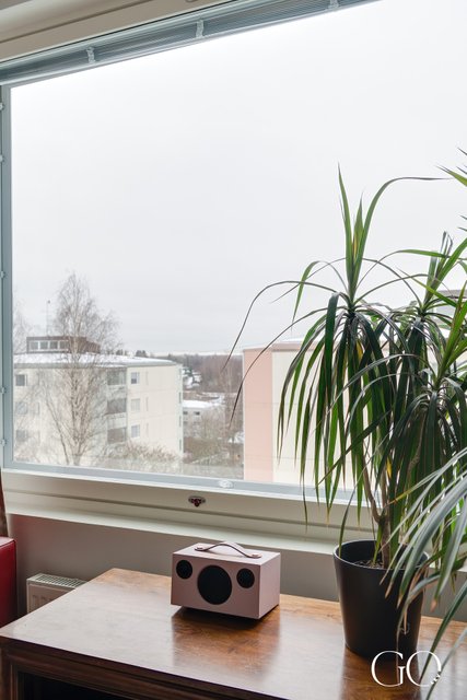 Tämä uniikki kuudennen kerroksen koti hurmaa heti sisään astuessa. Kahteen ilmansuuntaan avautuu upeat maisemat suurista ikkunoista kattojen ylle. Keittön ja olohuoneen yhdistelmä luo avaran tilan ja saa asunnon tuntumaan neliöitään suuremmalta. Kaksi makuuhuonetta, toimiva pohjaratkaisu, tilava kylpyhuone saunalla ja lasitettu parveke tekevät kauniin kokonaisuuden, joka sopii monessa eri elämäntilanteessa olevalle. Säilytystilaa on runsaasti eteisessä sekä makuuhuoneissa.