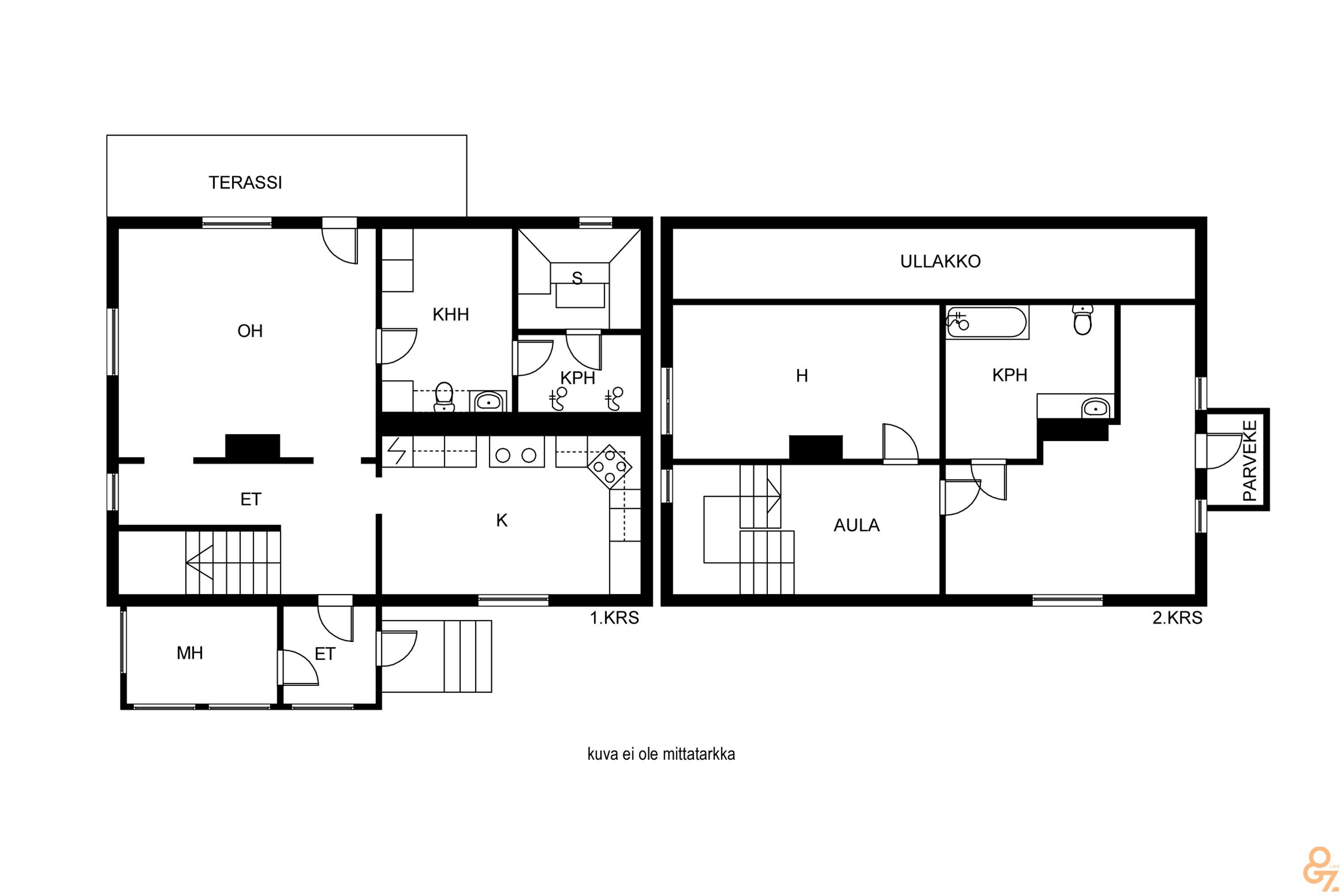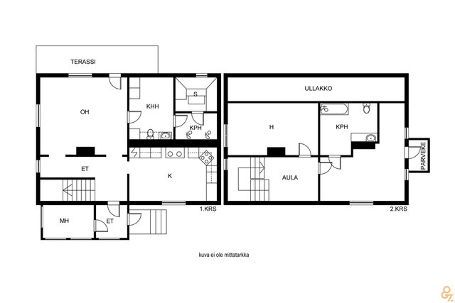 - Alakerta. Valmistunut 1900. Yläkerta laajennettu 1950. Alakerran lisäosa 2010.