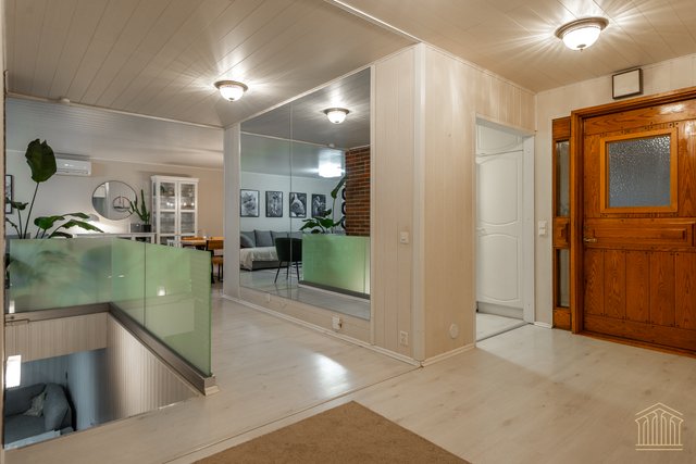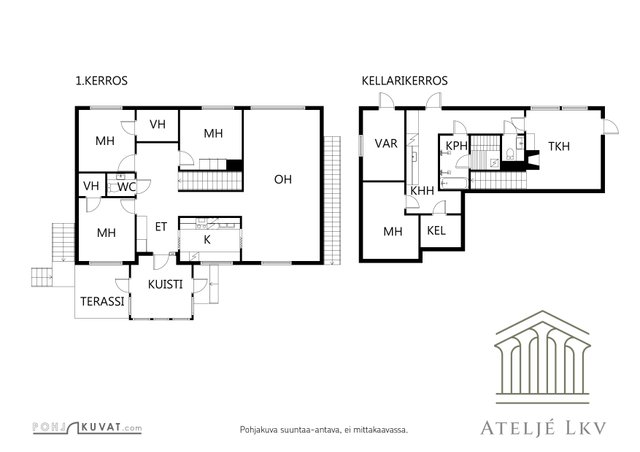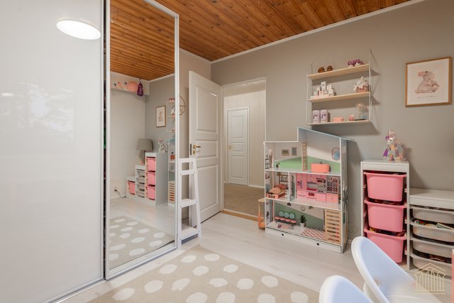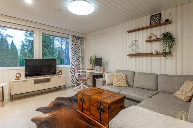 Asuinkerrokseen sijoittuvat mm. kolme makuuhuonetta, wc, keittiö ja hyvin avara olohuone. Kellarikerroksessa on tunnelmallinen varaava takkahuone, joista on pääsy upeasti remontoituun wc:hen, kylpyhuoneeseen ja saunaan. Täällä kelpaa rentoutua arjen askareista! Kerrokseen sijoittuvat lisäksi kodinhoitotilat, kellarivarasto ja yksi huone. Täältä pääset mukavasti myös suoraan suojaiselle takapihalle.
