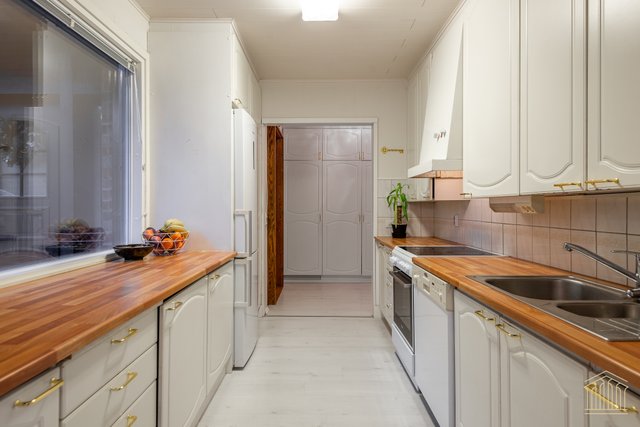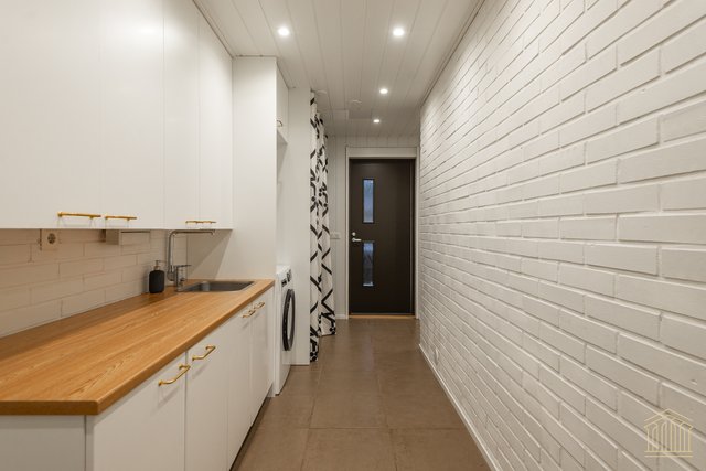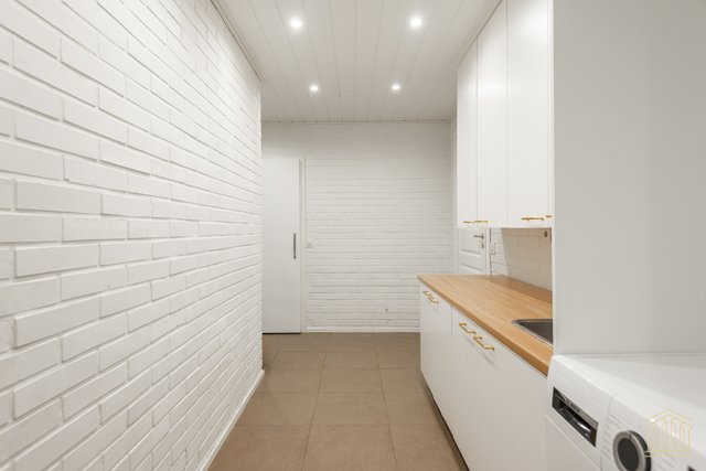 - Pesukoneliitäntä, tila pesutornille, lattialämmitys, ja pöytätaso