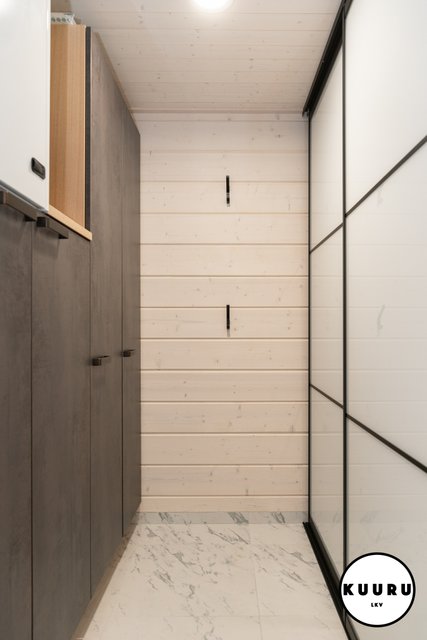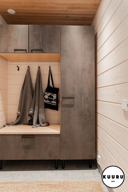 - Vaatehuone, lämmin ulkovarasto, kaapistot, seinäkaapit ja suksien huoltotila