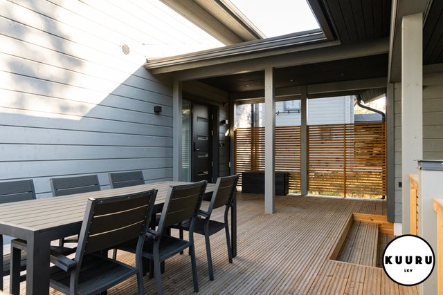 - Tilava lasitettu terassi tarjoaa mukavat puitteet nauttia raikkaasta ulkoilmasta säältä suojassa ja esimerkiksi aamukahvista nauttien.