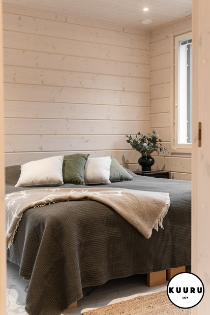 - Neljä tilavaa makuuhuonetta tarjoavat hyvät leposijat isommallekkin porukalle tai halutessasi voit sisustaa jonkun niistä työhuoneeksi. Huoneita on kaksi alakerrassa ja kaksi yläkerrassa, joten tilat jakautuvat mukavasti. Alakerran makuuhuoneissa on reilusti säilytystilaa kaapistojen ansiosta. Vaaleat pinnat ja suuret ikkunat luovat huoneisiin levollisen ja rauhallisen tunnelman.