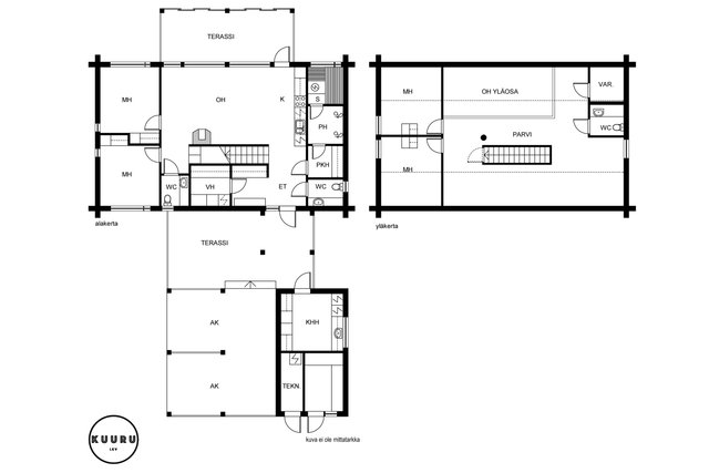 - Lattiat pääosin laattalattioita, yläkerrassa parkettilattia.