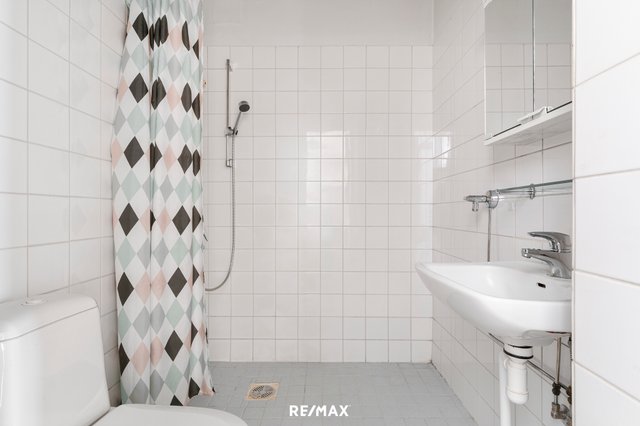 - WC-istuin, suihku, peilikaappi, pesuallas, ja pesukoneliitäntä