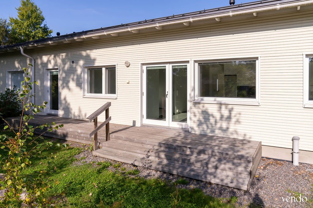 Olohuoneesta on käynti terassille ja omalle pienelle pihalle, jossa on mukava viettää aikaa. Lämmin ulkovarasto, autokatospaikka ja oma sisäänkäynti tekevät arjesta sujuvaa. Keittiössä on nykyaikaiset kodinkoneet, ja oma sauna tarjoaa rentoutumista päivän päätteeksi.