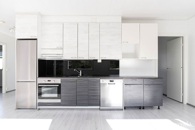- Jääkaappipakastin, uuni, liesi, liesituuletin, ja astianpesukone