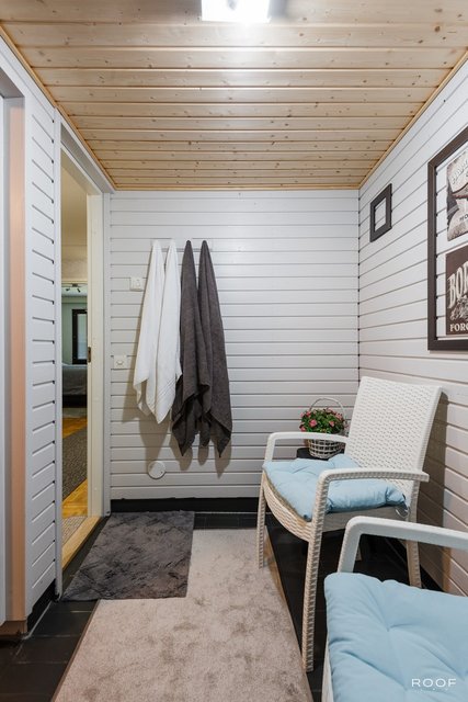 - Lattia: laatta. Seinät: puu. Kiukaan tyyppi: sähkökiuas.