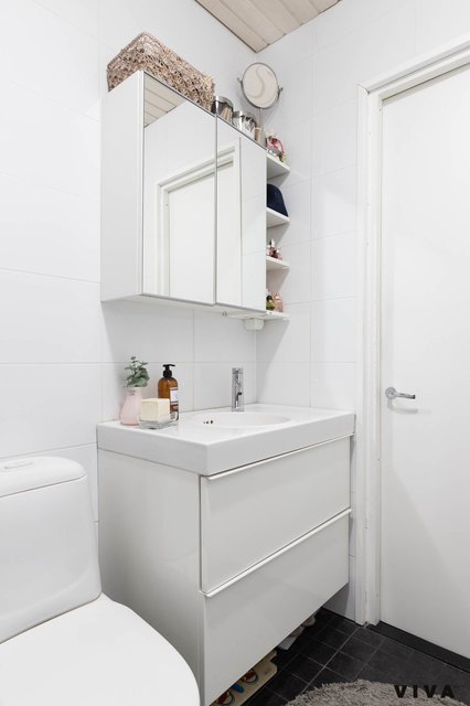 - Suihku, peili, peilikaappi, ja pesukoneliitäntä