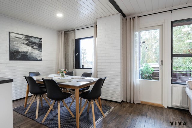 Etsitkö tilavaa ja viihtyisää kotia perheellesi rauhallisella asuinalueella? Tämä rivitalon päätyasunto tarjoaa erinomaiset puitteet mukavaan arkeen. Asunnon tilat jakautuvat kahteen kerrokseen, kokonaispinta-ala on 126 neliötä. Asuntoon on tehty vuosien varrella viihtyisyyttä ja toiminnallisuutta parantavia muutoksia, joilla asuntoon on saatu lisää avaruutta ja toimintoja mm. kodinhoitohuone. Myös taloyhtiössä on huolehdittu remonteista tarpeen mukaan mm. käyttövesiputkien uusinta kokonaisuudessaan ja viimeisimpänä kattoremontti tänä vuonna, joten voit muuttaa sisään huoletta.
