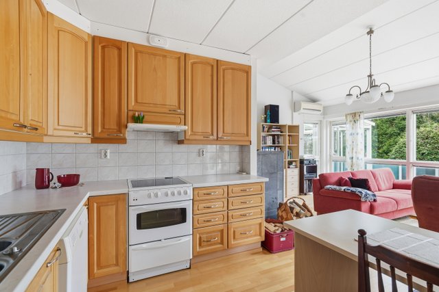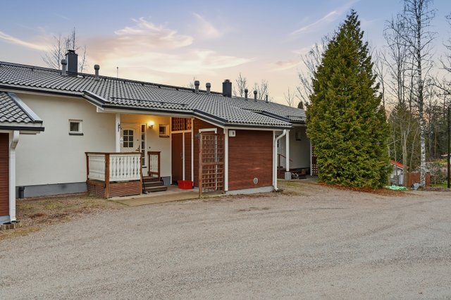 Asunnossa on kaksi tilavaa terassia, joista toinen on lasitettu, mikä mahdollistaa ulkoilmasta nauttimisen ympäri vuoden. Lämmin autotalli ja useat säilytystilat tuovat arkeen käytännöllisyyttä. Alue on rauhallinen ja vehreä. Kävelyetäisyydellä sijaitsevat päiväkoti, koulu sekä monipuoliset palvelut tekevät arjesta sujuvaa.