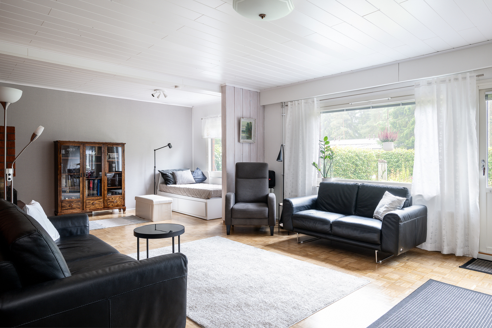 Tässä tilavassa ja toimivapohjaisessa kodissa yhdistyvät käytännöllisyys, mukavuus ja luonnonläheinen asuminen.