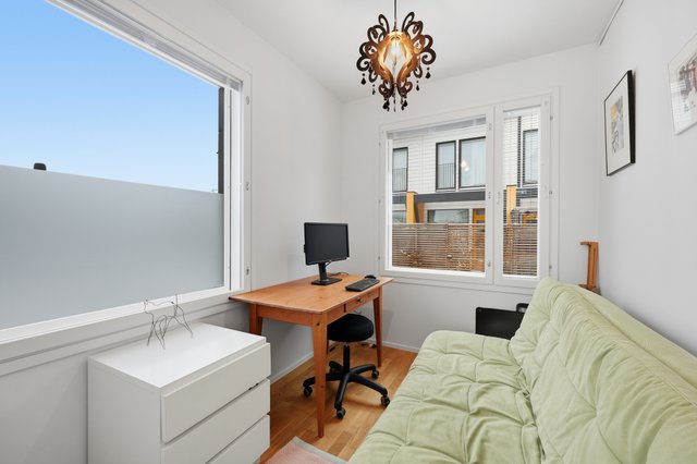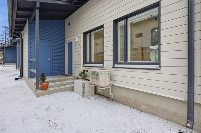 Vuonna 2021 valmistunut koti on erinomaisessa kunnossa ja sen energiatehokas maalämpö pitää lämmityskustannukset kurissa. Ilmalämpöpumppu hoitaa viilennyksen. Asunnossa on kaksi makuuhuonetta ja käytännöllinen keittiö avaran olohuoneen yhteydessä. Oma sauna ja tilava terassi piha-alueella tuovat lisämukavuutta arkeen.