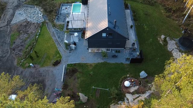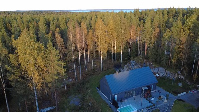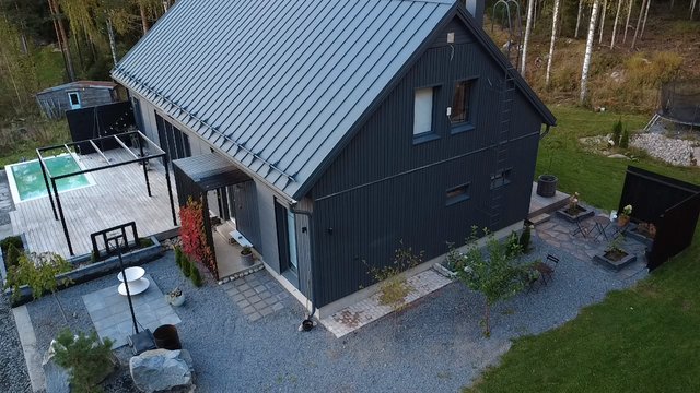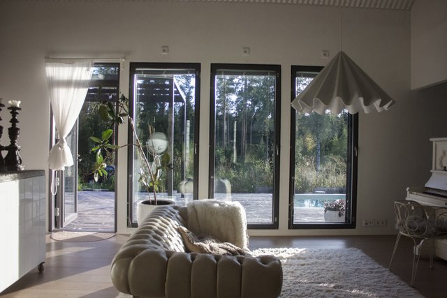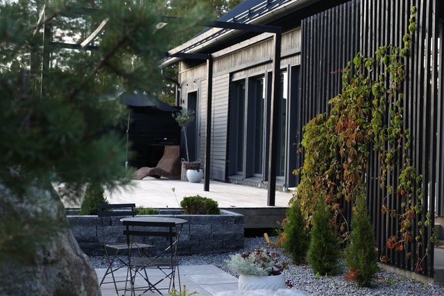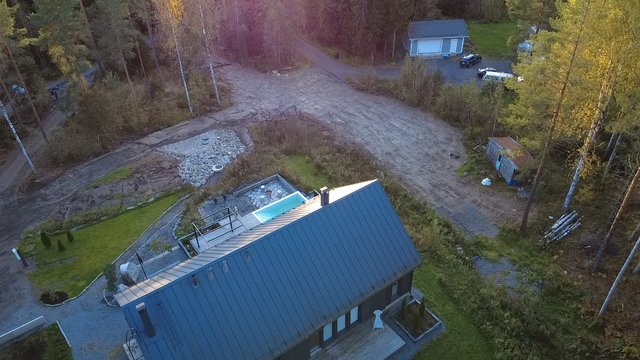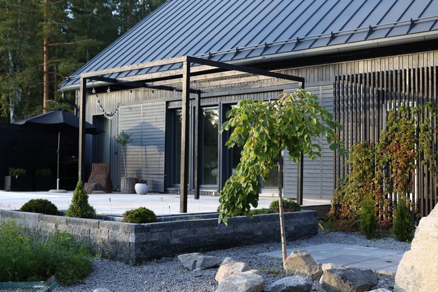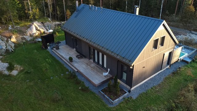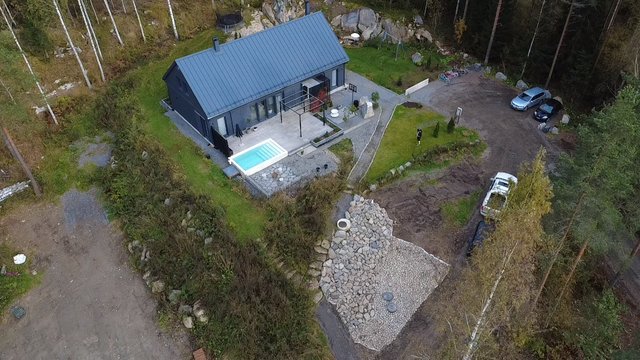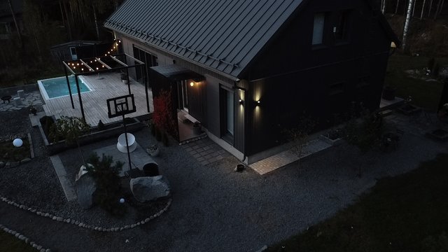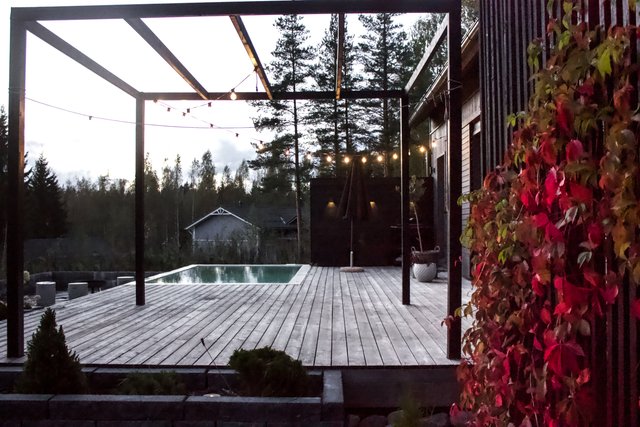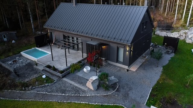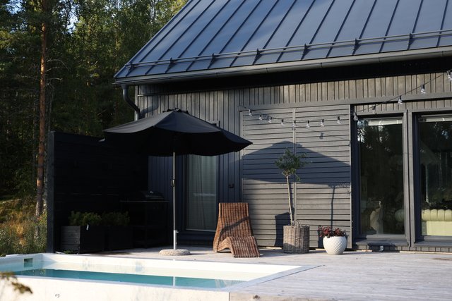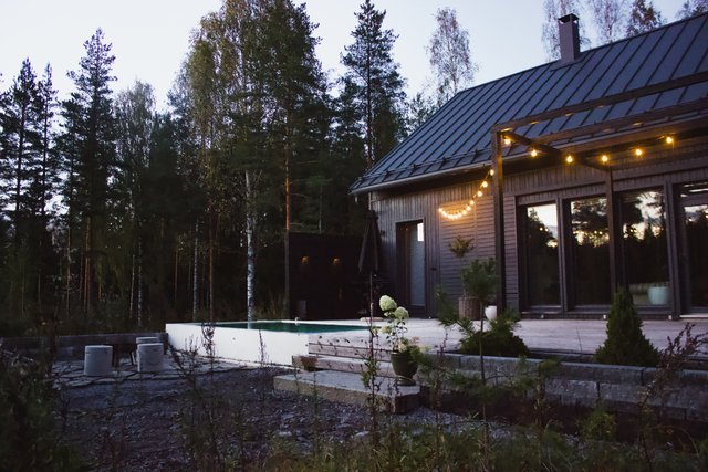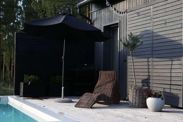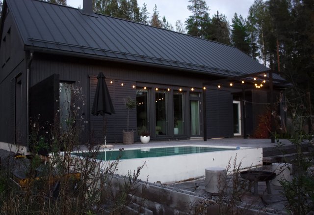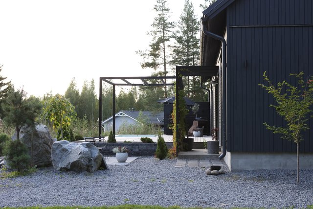 Laaja, 1,1 hehtaarin tontti tarjoaa rauhaa ja omavaraisuutta: omasta porakaivosta lasket vedet suoraan omaan betoniuima-altaaseen, jonka voit lämmittää maalämmöllä. Siperianlehtikuusiterassit, harmoninen pihapiiri ja luonnontila ympärillä antavat puitteet rentoutumiseen ja luonnonläheiseen elämäntapaan. Iltaisin voit upota lämpimään altaaseen ja katsella tähtitaivasta – juuri sitä on arjen luksus parhaimmillaan.