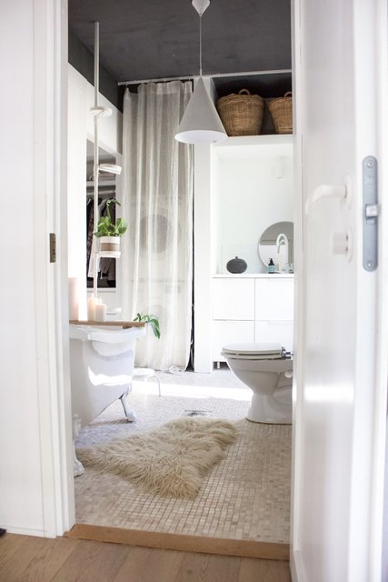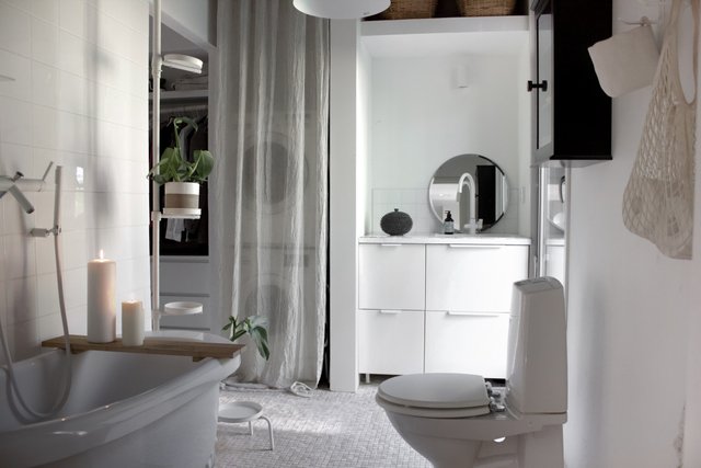 - WC-istuin, suihku (2x sadesuihku), kylpyamme, pesukoneliitäntä, lattialämmitys, ja pesuallas