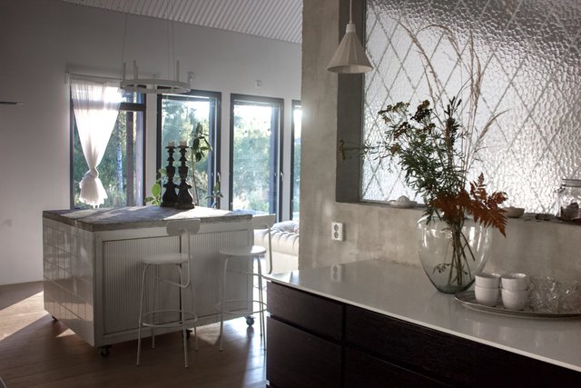 - Kvikin Mano Sera-keittiö Liikutettava saareke Katseenvangitsijana valkoinen aaltopeltikatto