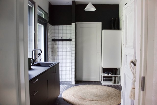 - Pöytätaso, lattiakaivo, pesuallas, ja kurapiste