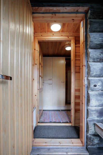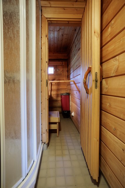Pesutilat ja sauna ovat käytännöllisesti heti sisäänkäynnin yhteydessä, mikä tekee lumisten vaatteiden käsittelystä vaivatonta. Saunan lämpö tarjoaa täydellisen rentoutumishetken päivän päätteeksi. Lisäksi mökissä on ulkovarasto, joka tarjoaa rutkasti säilytystilaa harrastusvälineille.