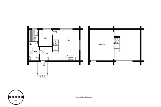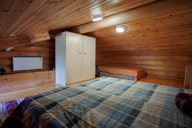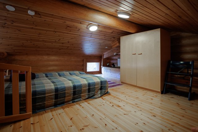 - Kotoisalle parvelle mahtuu hyvin parisänky, ja lisäksi tilaa on 1–2 sängylle tai useammalle patjalle, jolloin myös isompi seurue majoittuu mukavasti.