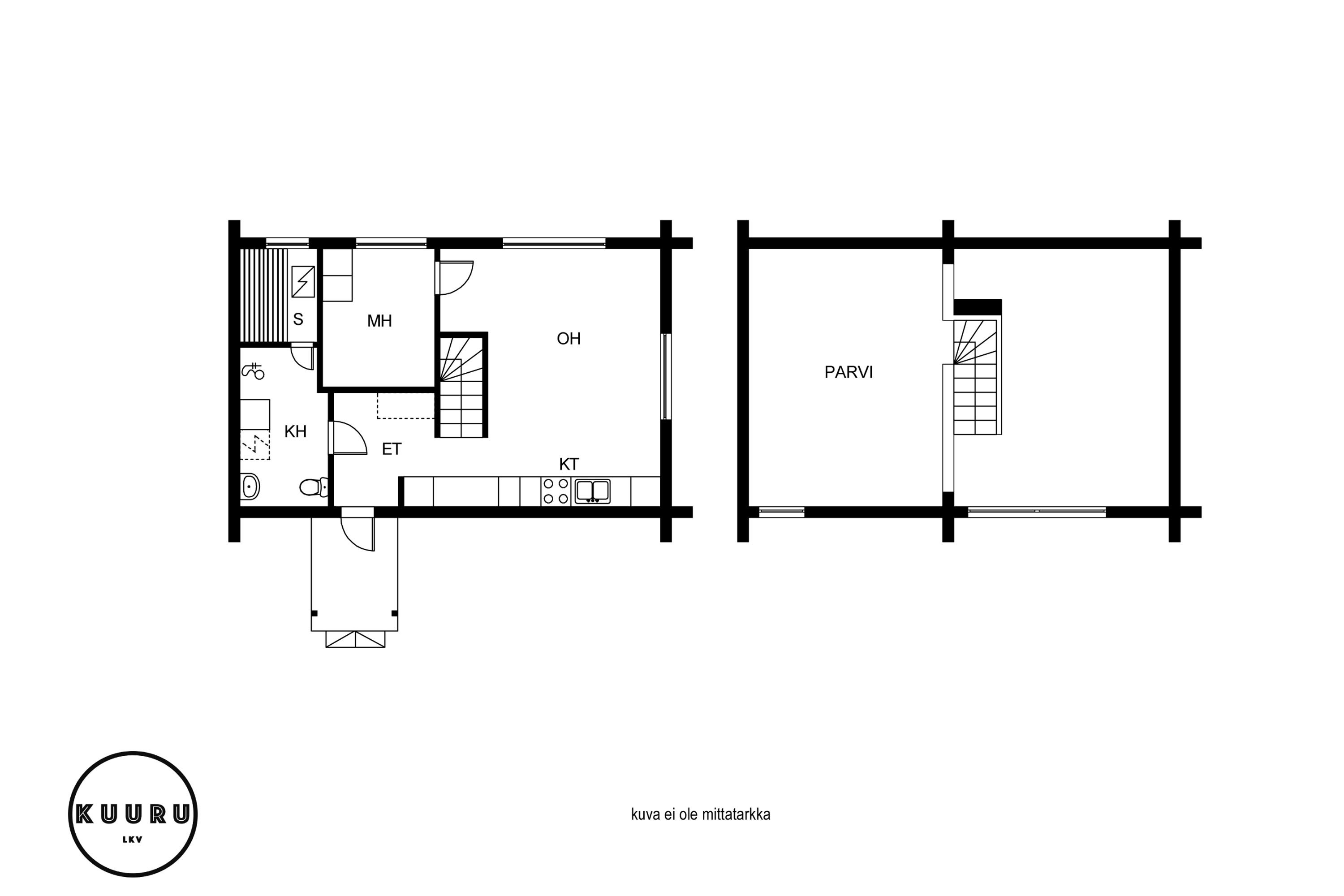 Mökin sydän on avara tupa, jossa luonnonkivinen takka luo lämpöä ja tunnelmaa talvi-iltoihin. Keittiö on käytännöllinen ja ajaton, tarjoten riittävästi tilaa herkullisten aterioiden valmistamiseen. Alakerran makuuhuone on rauhallinen paikka lepoon, ja parvi tarjoaa lisätilaa vierailijoille.